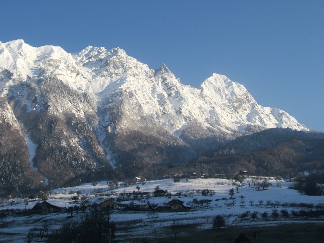 Vue d'Ugine sur le massif des Aravis : Mont Charvin (2409 m)